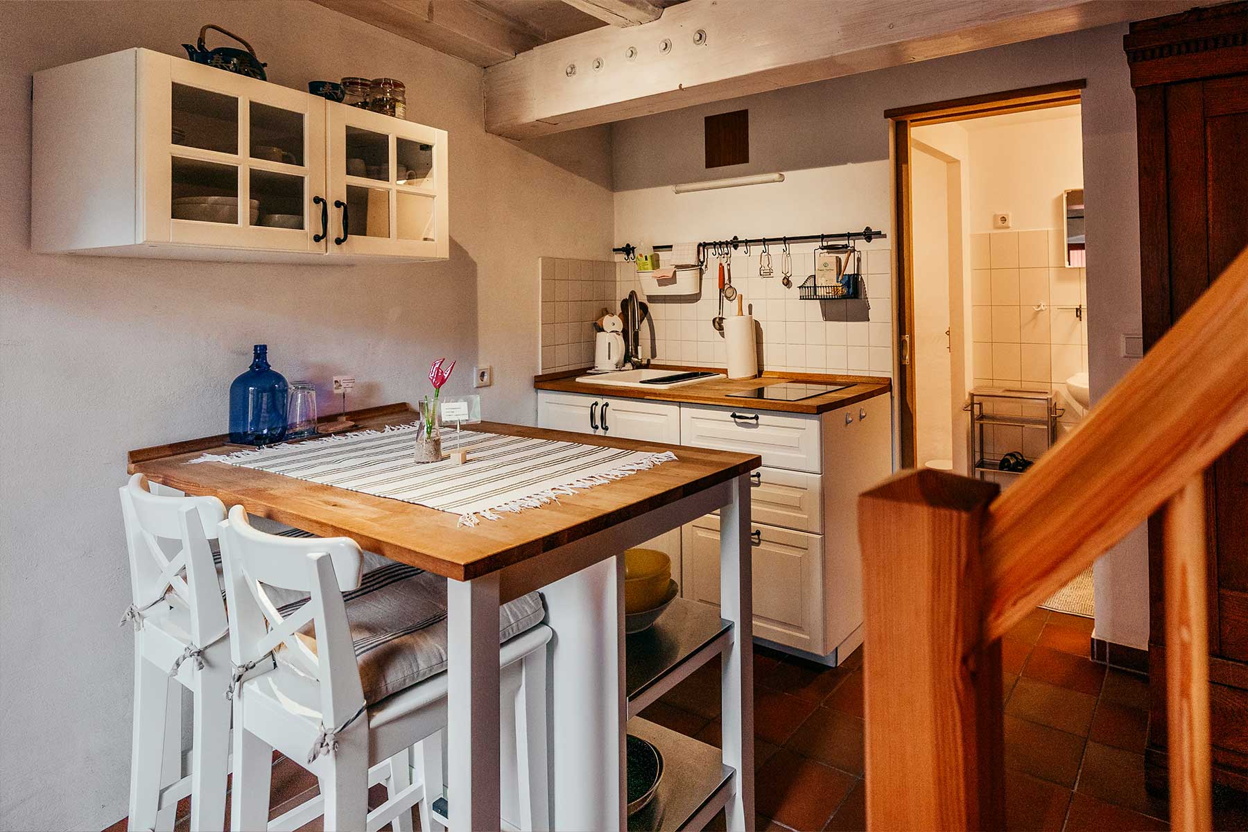 Um Ihnen optimale Bedingungen für Ihren Fastenurlaub zu bieten, haben wir alle unsere Gebäude hochwertig und bewusst minimalistisch ausgestattet. Wie auch beim Fasten ist ja weniger bekanntlich oft mehr, denn das Geheimnis liegt im Weglassen. Bei der Wiedererlangung von Klarheit und Zielfokus wird Sie die Beschränkung auf das Wesentliche während Ihrer Fastenauszeit unterstützen. Auf jeglichen modernen Komfort müssen Sie deshalb natürlich nicht verzichten. Wir haben uns über viele kleine Details Gedanken gemacht und Ihre Unterkunft liebevoll gestaltet. Durch die Verwendung natürlicher und ökologischer Materialien und den weitgehenden Verzicht auf synthetische Stoffe entsteht ein außergewöhnliches und gesundes Raumklima.